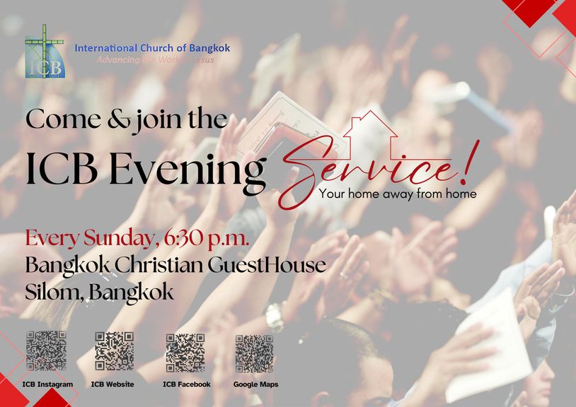 Welcome to ICB, an international church located at the heart of Bangkok, where individuals of different nationalities and from different walks of life meet every Sunday to worship Jesus Christ.