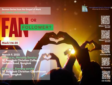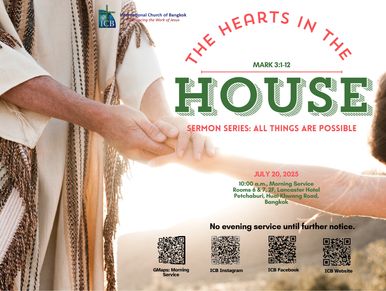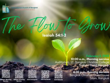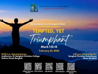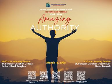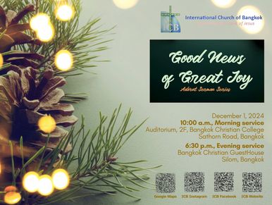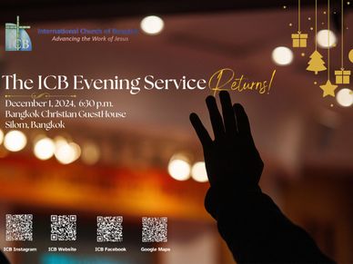 Sunday Worship Address: Morning Service: Located inside Lancaster Hotel, 1777 ถ. เพชรบุรี แขวงบางกะปิ เขตห้วยขวาง กรุงเทพมหานคร 10310/ Evening Service: Bangkok Christian GuestHouse ตำบล สีลม, อำเภอ 123 Soi Sathon 2, Bang Rak, Bangkok 10500
